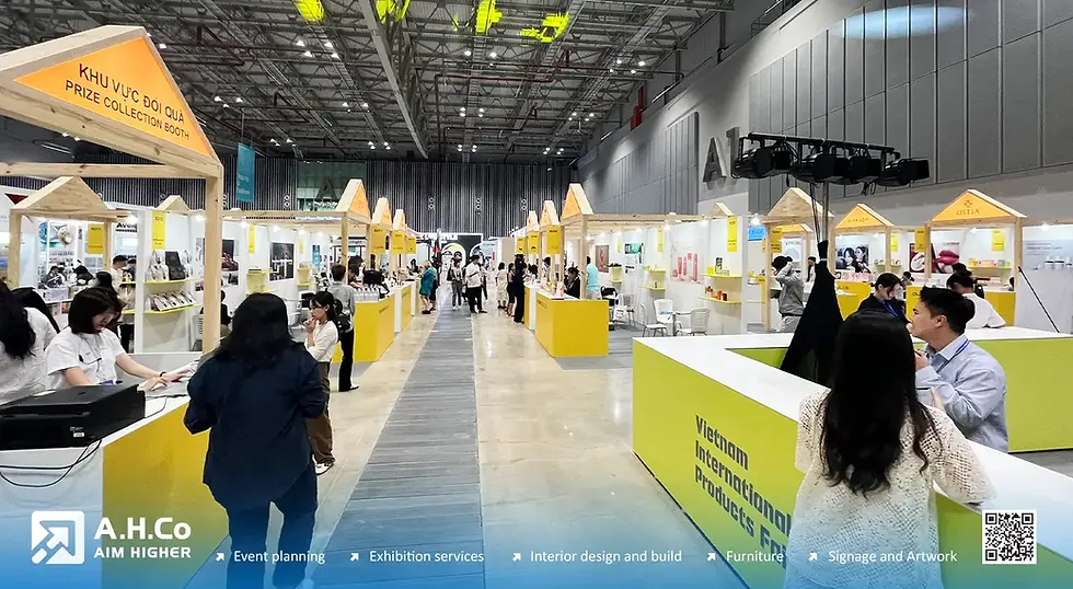 At the OCOP Product Connection program in Dong Thap, A.H.Co delivered the design and build of an exhibition booth that turns local specialties into a clear, modern showcase. A welcoming front, tall brand signage, and modular display bays made the OCOP story easy to read from the aisle, while tidy merchandising highlighted provenance and quality for buyers.